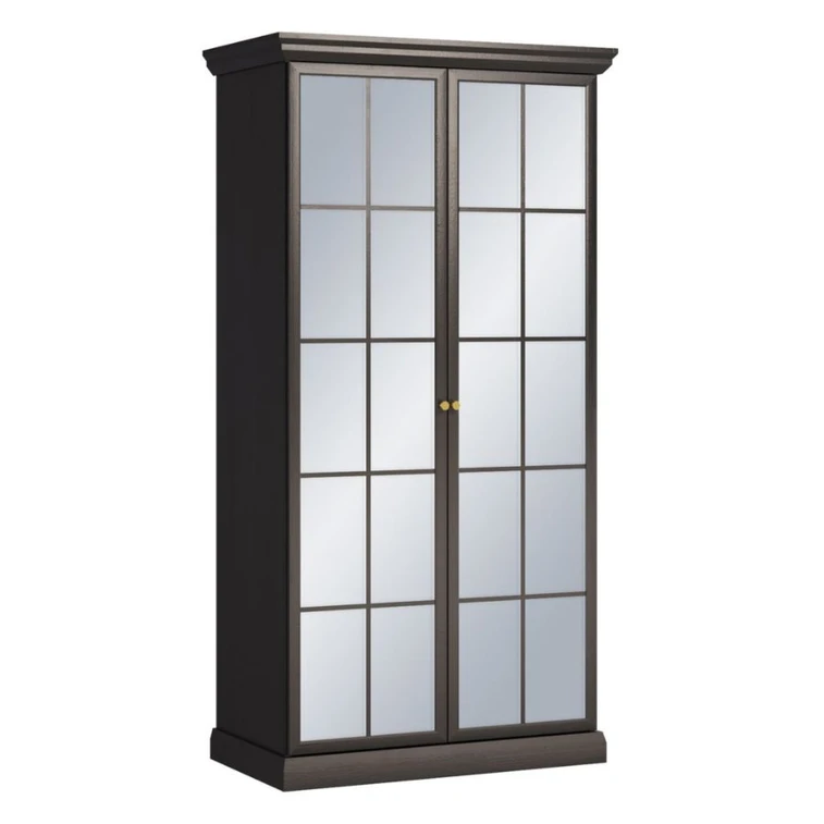 Praktická šatní skříň se zrcadlovými čely, která opticky zvětší prostor domu. Uvnitř jsou dvě police a šatní tyč. Černohnědý nebo bílý dekor s hlubokými přírodními póry dřeva má různé stupně lesku a působí mimořádně dynamicky a velmi rozmanitě. Kolekce Lucca vám umožňuje volně míchat klasický a moderní styl.