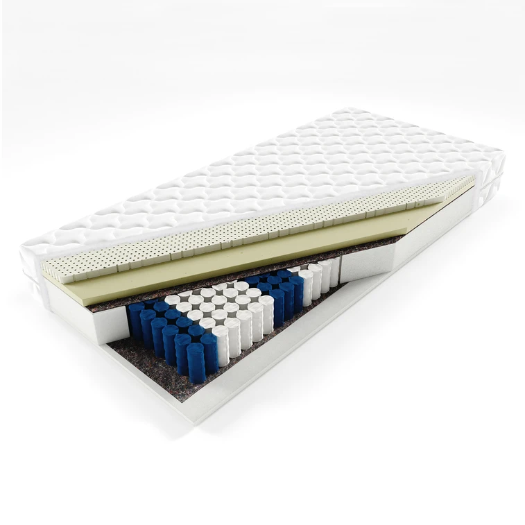 Pružiny: Každá pružina je umístěna v samostatném sáčku z tkaniny. Matrace se tak lépe přizpůsobí tělesné hmotnosti. Pružiny jsou vyrobeny z vysoce kvalitních certifikovaných drátů.