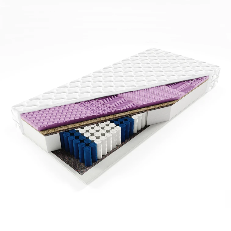 Velmi kvalitní 7 zónová matrace. Na obou stranách pokrytá pěnou. Každá pružina je umístěna v samostatné kapse z textilu. Kokosová vrstva zpevňuje matraci a zabraňuje jejímu zborcení.