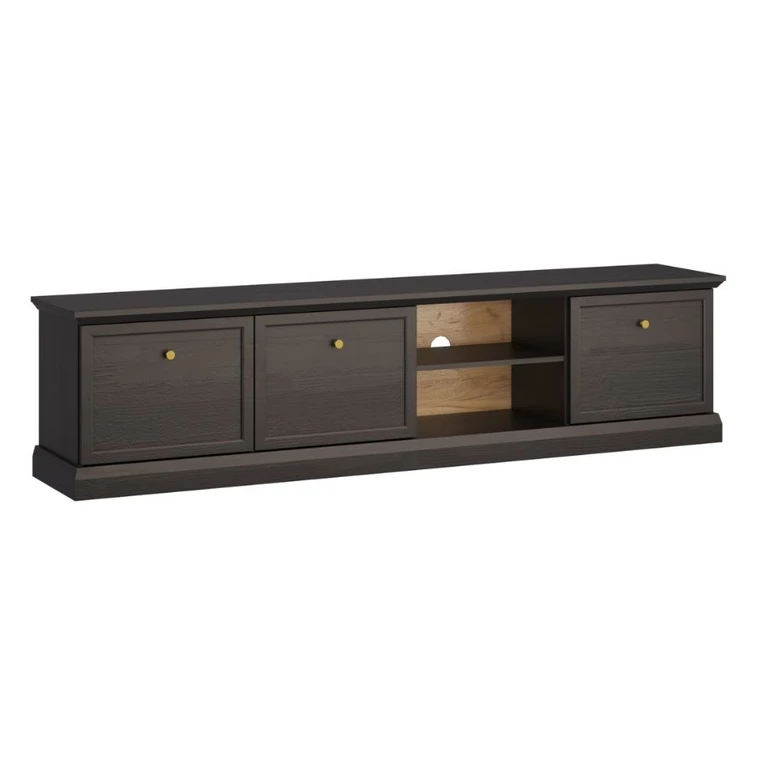 Praktický TV stolek se dvěma prostornými zásuvkami a policemi na TV vybavení. Černohnědý nebo bílý dekor s hlubokými přírodními póry dřeva má různé stupně lesku a působí mimořádně dynamicky a velmi rozmanitě. Kolekce Lucca vám umožňuje volně míchat klasický a moderní styl.