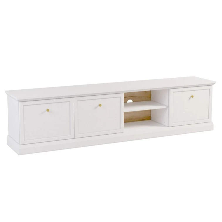 Praktický TV stolek se dvěma prostornými zásuvkami a policemi na TV vybavení. Černohnědý nebo bílý dekor s hlubokými přírodními póry dřeva má různé stupně lesku a působí mimořádně dynamicky a velmi rozmanitě. Kolekce Lucca vám umožňuje volně míchat klasický a moderní styl.