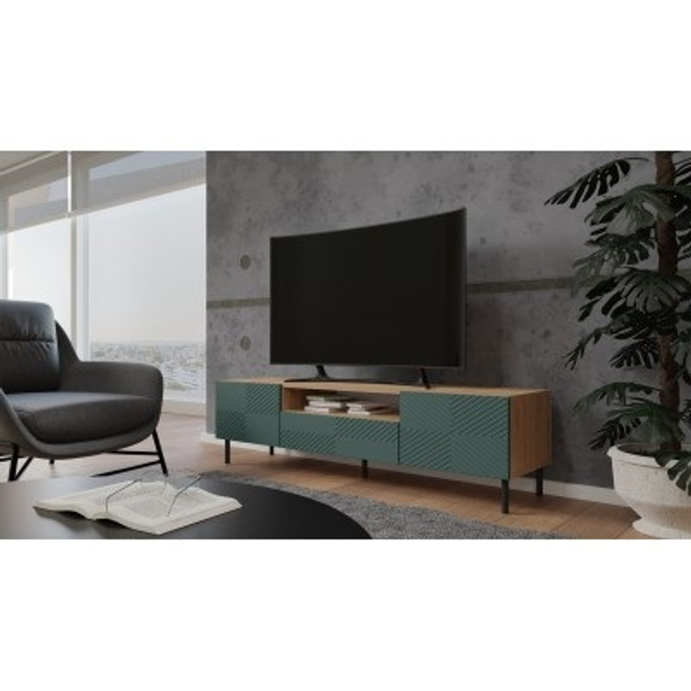 Televizní stolek RTV Kama 160/2K - dub artisan/zelená.