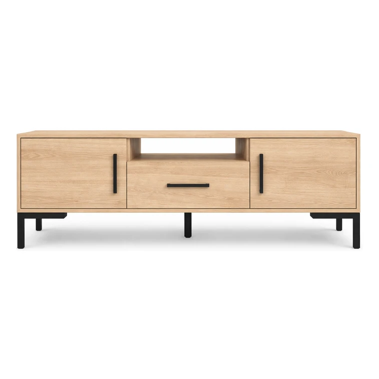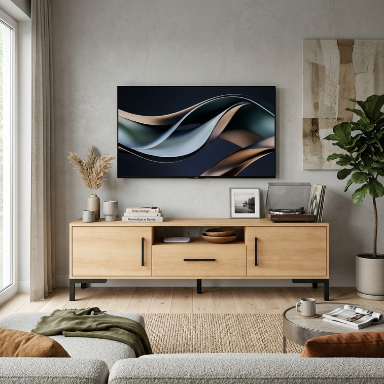 Moderní televizní stolek RTV na nožičkách je praktickým a stylovým řešením pro váš obývací pokoj. Nabízí dostatek prostoru pro televizi i veškeré příslušenství, jako jsou set-top boxy, herní konzole nebo dekorace. Díky kombinaci uzavřeného i otevřeného úložného prostoru budete mít vše přehledně uspořádané. Vyvýšené nožičky dodávají stolku vzdušný vzhled a zároveň usnadňují úklid pod ním. Ideální volba pro každodenní pohodlí i moderní interiér.