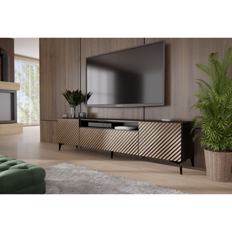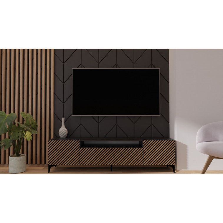 Televizní stolek RTV SENTO, dub řemeslný-černá 200 cm.