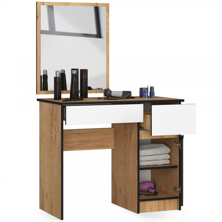 Toaletní stolek P-2/SL. S naším praktickým toaletním stolkem získáte okamžitě místo pro umístění veškeré své kosmetiky. Dopřejte si ten luxus mít svůj vlastní kosmetický stolek. Zrcadlo vyžaduje montáž na zeď, není připevněno k toaletnímu stolku.