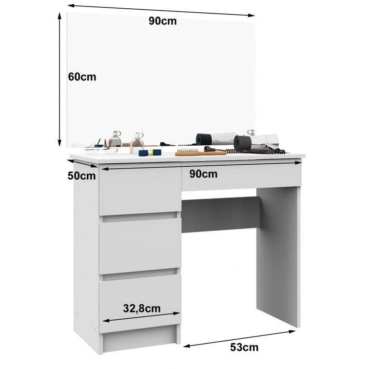 Toaletní stolek T-6/SL. S naším praktickým toaletním stolkem získáte okamžitě místo pro umístění veškeré své kosmetiky. Dopřejte si ten luxus mít svůj vlastní kosmetický stolek. Zrcadlo vyžaduje montáž na zeď, není připevněno k toaletnímu stolku.
