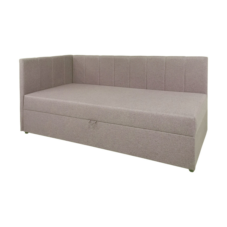 Jednolůžková válenda s úložným prostorem a čelem. Válenda je potažena pevnou a odolnou tkaninou, která je měkká na dotek.