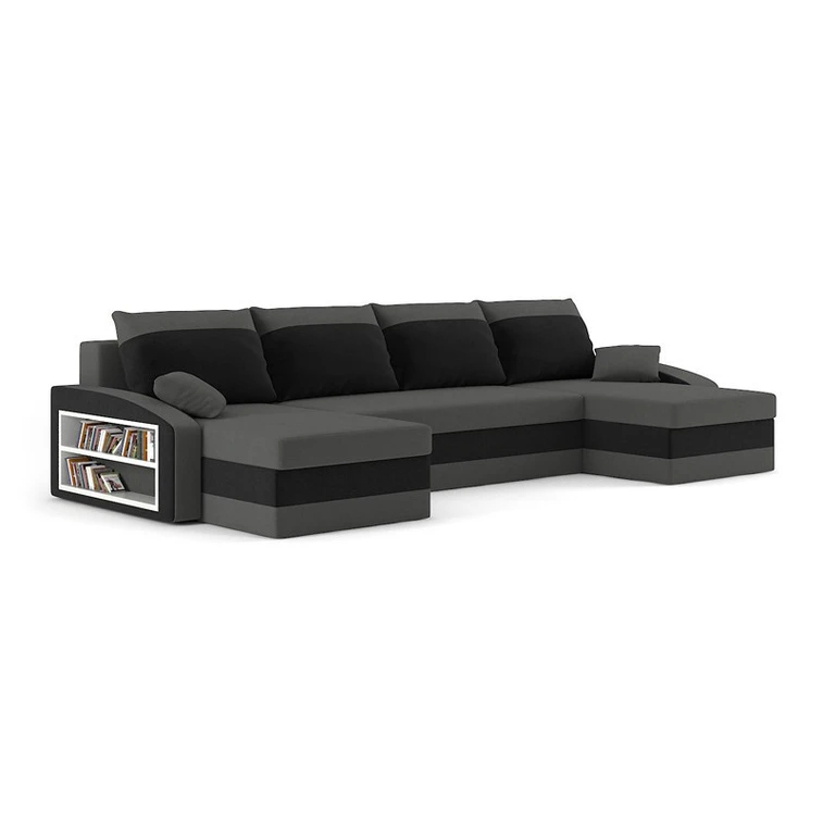 Velká rohová rozkládací sedací souprava s poličkou SPARTAN Šedá/černá