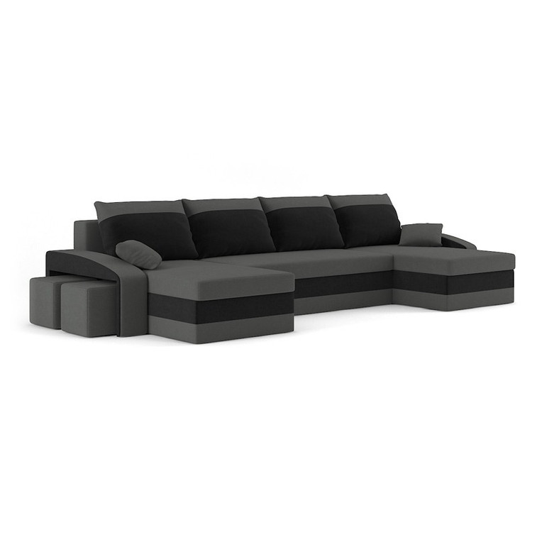 Velká rohová rozkládací sedací souprava s taburety Spartan. Pevná konstrukce ze dřeva a OSB desky. Potah z kvalitní látky Haiti v mnoha moderních barevných odstínech. Snadné rozkládání pohovky na lůžkovou podobu. Sedací souprava má 2 úložné prostory pod sedáky. Praktické taburety jsou umístěny v bočnicích sedačky. Moderní design vhodný do všech současných interiérů.