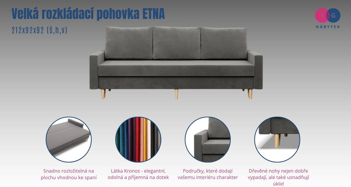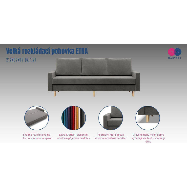 Pevná konstrukce ze dřeva a OSB desky. Snadné rozkládání pohovky na lůžkovou podobu. Moderní skandinávský design vhodný do všech současných interiérů.