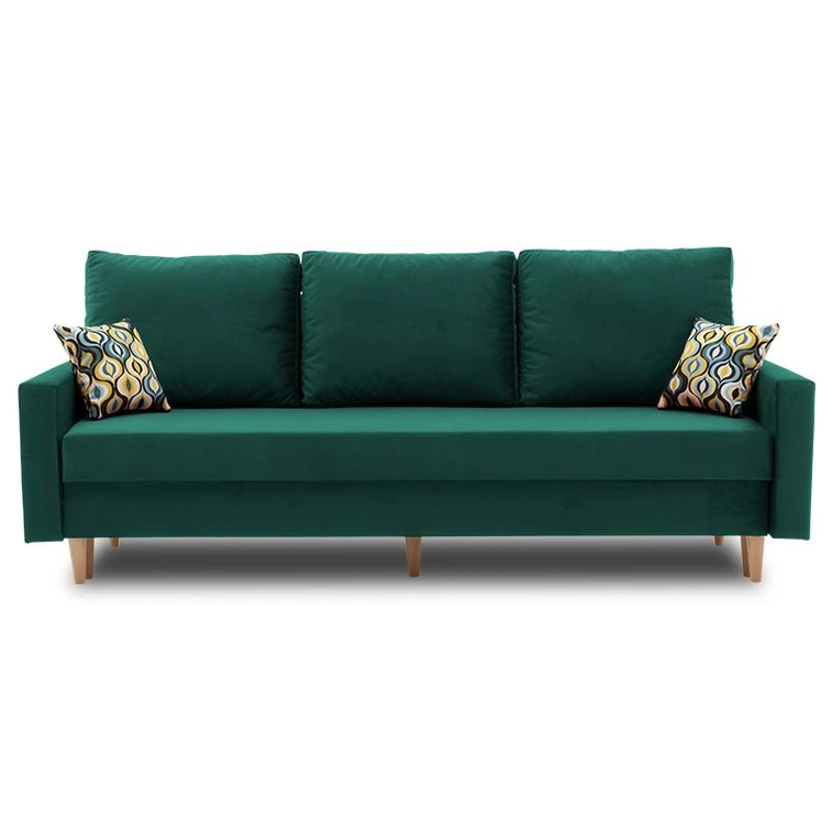 Pevná konstrukce ze dřeva a OSB desky. Potah z kvalitní látky Kronos v mnoha moderních barevných odstínech. Snadné rozkládání pohovky na lůžkovou podobu. Moderní design vhodný do všech současných interiérů.