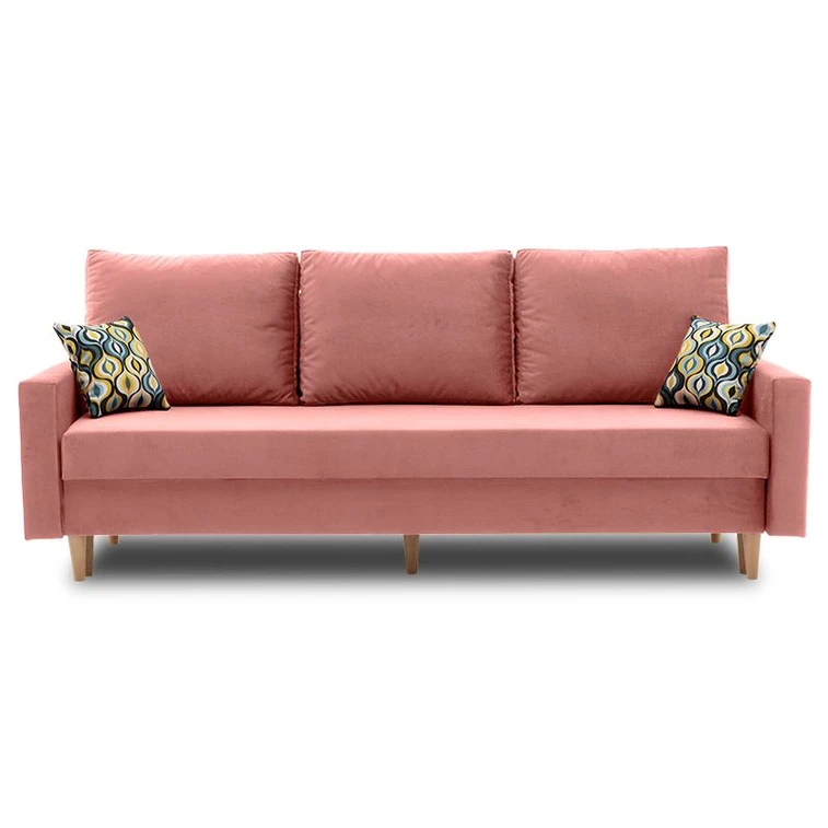 Pevná konstrukce ze dřeva a OSB desky. Potah z kvalitní látky Kronos v mnoha moderních barevných odstínech. Snadné rozkládání pohovky na lůžkovou podobu. Moderní design vhodný do všech současných interiérů.