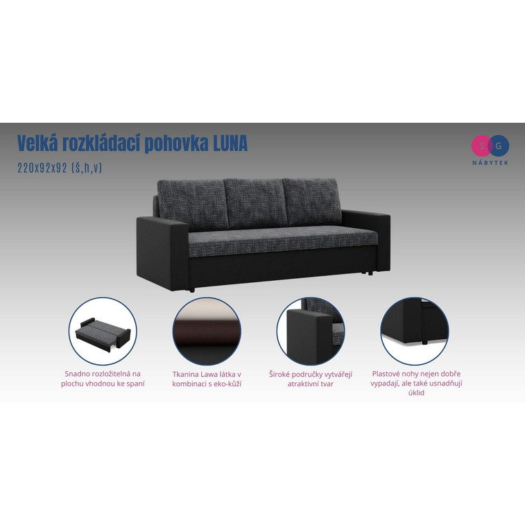 Velká rozkládací pohovka LUNA Šedá/bílá II