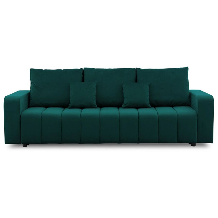 Pevná konstrukce ze dřeva a OSB desky. Potah z kvalitní tkaniny v mnoha moderních barevných odstínech. Sedací část je prošívaná. Snadné rozkládání sedací soupravy na lůžkovou podobu. Moderní design vhodný do všech současných interiérů.
