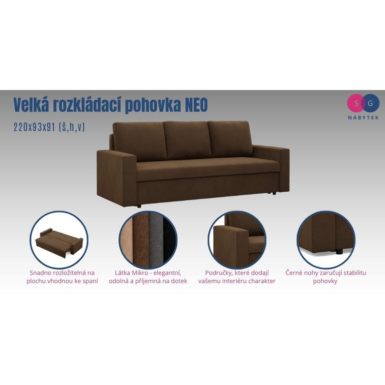 Velká rozkládací pohovka NEO - rovný bok - model 2.
