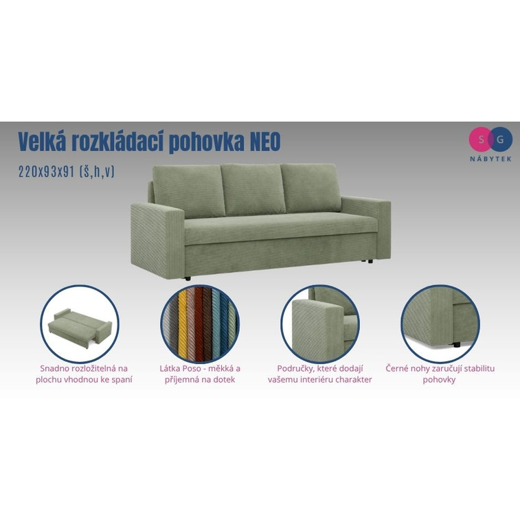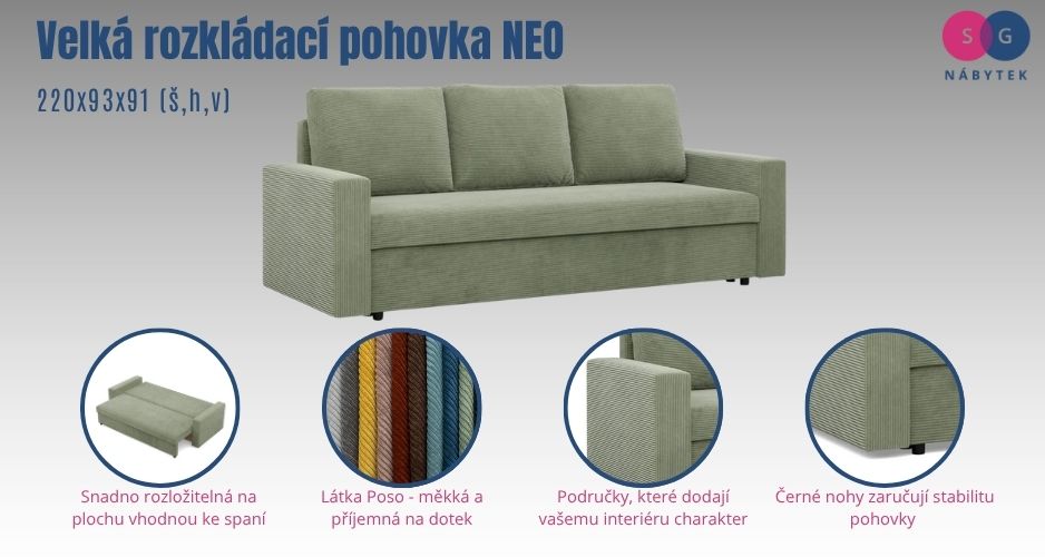 Velká rozkládací pohovka NEO - rovný bok - model 3.