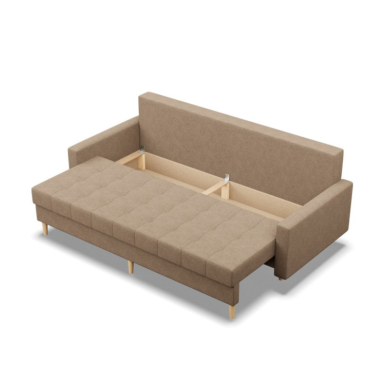 Pevná konstrukce ze dřeva a OSB desky. Snadné rozkládání pohovky na lůžkovou podobu. Moderní skandinávský design vhodný do všech současných interiérů.