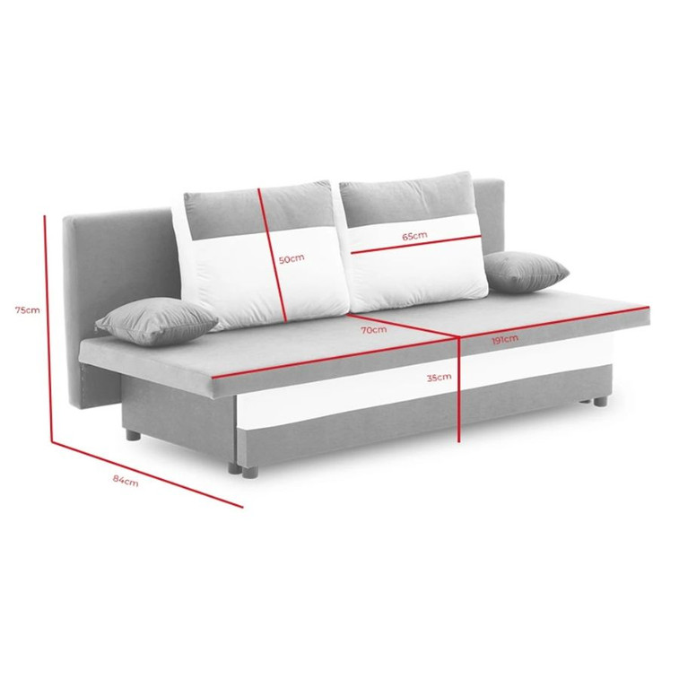 Pevná konstrukce ze dřeva a OSB desky. Potah z kvalitní látky v mnoha moderních barevných odstínech. Snadné rozkládání pohovky na lůžkovou podobu. Moderní design vhodný do všech současných interiérů.