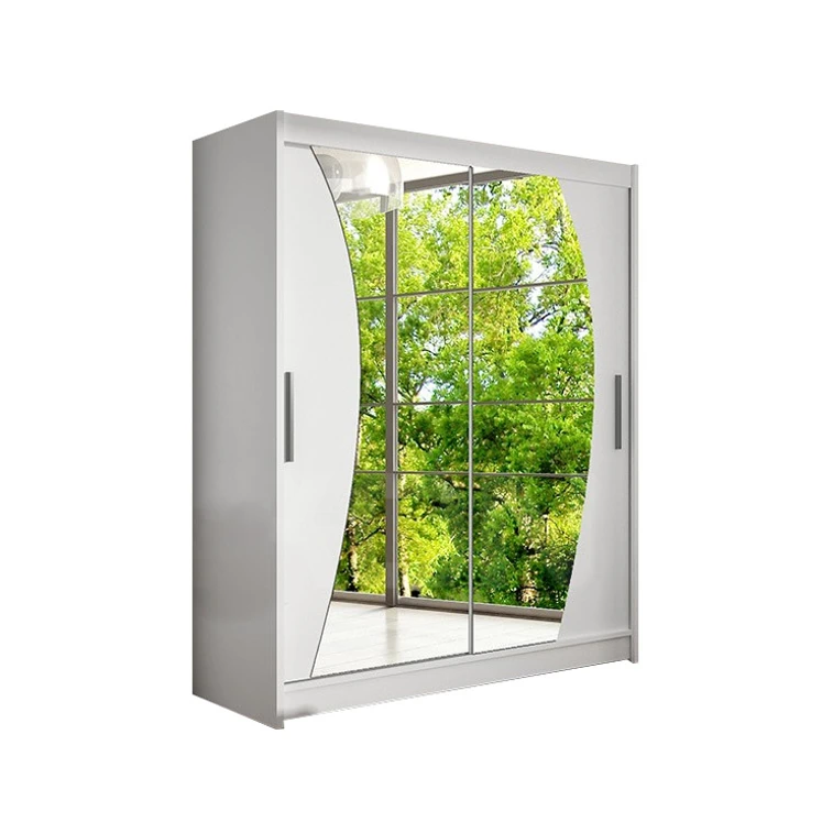 Dvoudveřová šatní skříň se systémem posuvných dveří má krásný zrcadlový design. Je vyrobena z nejkvalitnějších materiálů. Další výhodou šatní skříně jsou krásné dlouhé stříbrné úchytky. Díky vodícímu systému se snadno otevírá.