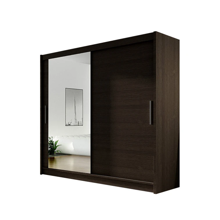 Dvoudveřová šatní skříň se systémem posuvných dveří, která usnadňuje každodenní používání. Moderní, funkční a elegantní. Určeno pro bezpečné uložení oděvů a jiných osobních věcí. Velké zrcadlo, je umístěno pouze na jedné straně čela skříně.
