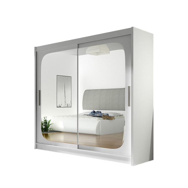 Dvoudveřová šatní skříň Bega VIII se systémem posuvných dveří. Vyrobeno z nejkvalitnějších materiálů. Vodicí systém značně usnadňuje proces otevírání a zavírání šatní skříně. Interiér nábytku je navržen tak, aby v něm bylo místo nejen pro oblečení, ale i jiné drobné osobní předměty. Ideální do ložnice, obývacího pokoje nebo haly.