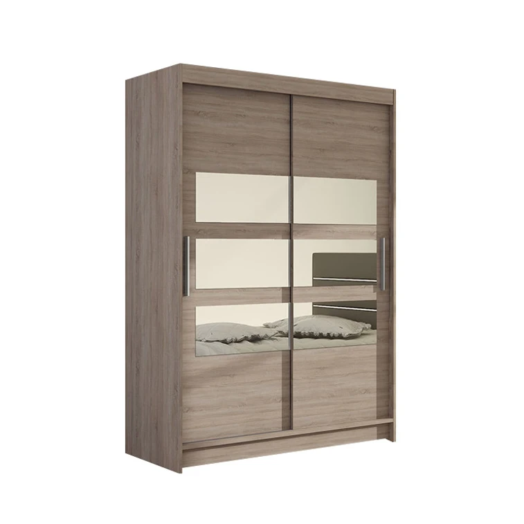 Šatní skříň s posuvnými dveřmi Miami V. Šatní skříň je extrémně odolná díky nejkvalitnějším materiálům použitým při její výrobě. Zrcadla umístěná na čelech šatní skříně jí dodávají další kouzlo a opticky zvětšují místnost. Skříň je velmi prostorná.
