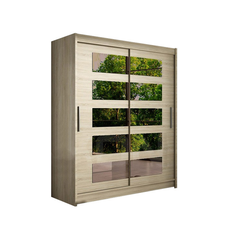Šatní skříň Westa V je moderní a funkční kus nábytku. Kouřová zrcadla na předních stranách dodávají eleganci a zároveň místnost působí prostornějším a světlejším dojmem. Vodicí systém instalovaný v této šatní skříni usnadní každodenní používání. Skříň má mnoho polic, se kterými bude udržování pořádku v bytě hračkou.