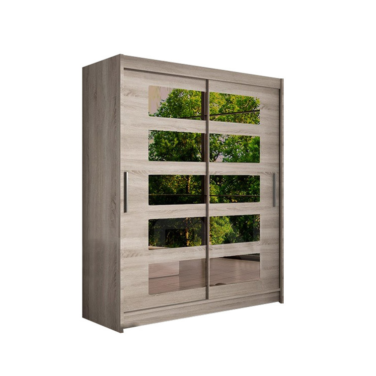 Šatní skříň Westa V je moderní a funkční kus nábytku. Kouřová zrcadla na předních stranách dodávají eleganci a zároveň místnost působí prostornějším a světlejším dojmem. Vodicí systém instalovaný v této šatní skříni usnadní každodenní používání. Skříň má mnoho polic, se kterými bude udržování pořádku v bytě hračkou.