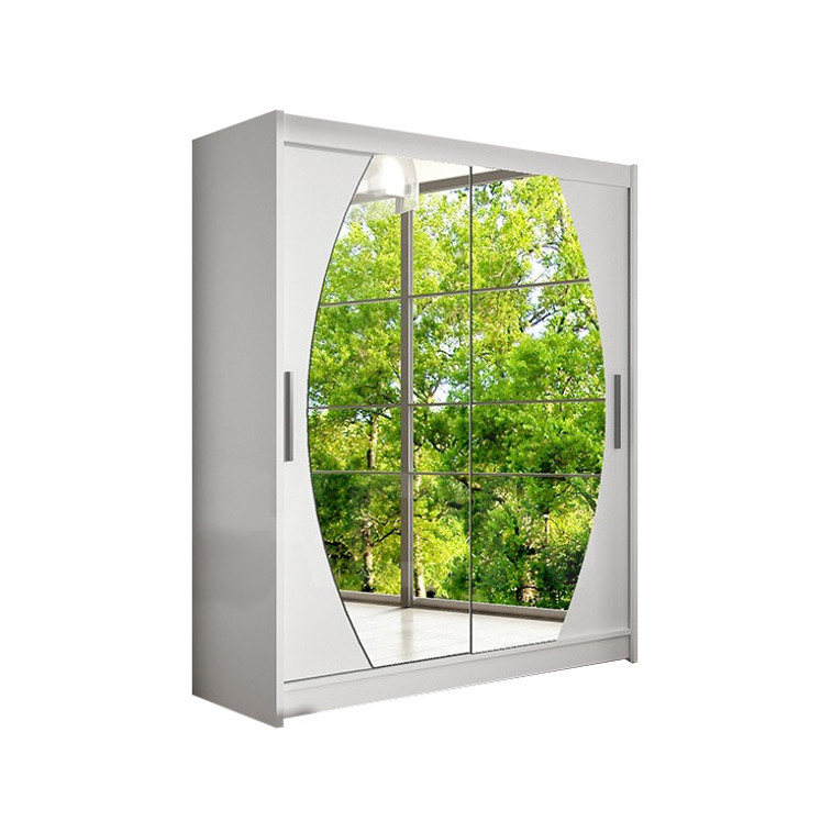 Skříň Westa VIII se systémem posuvných dveří. Zrcadlo oválného tvaru výrazně zvětšuje místnost, ve které je šatní skříň umístěna. Šatní skříň je ideálním prvkem do každé ložnice, obývacího pokoje nebo dětského pokoje. Vodicí systém výrazně usnadňuje otevírání a zavírání šatní skříně.