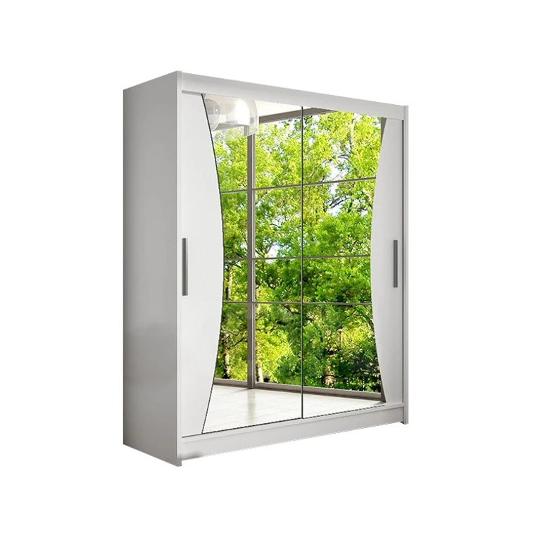 Posuvná skříň Westa X kombinuje klasickou jednoduchost a moderní design. Zrcadlo umístěné na čelech ve tvaru oblouku dodává své jedinečné kouzlo. Je ideální jako šatní skříň do předsíně nebo místo pro uložení oblečení v ložnici nebo jiných drobností každodenní potřeby. Střed šatní skříně je rozdělen na dvě stejné části. Na pravé straně jsou police a na levé straně závěsná šatní tyč.