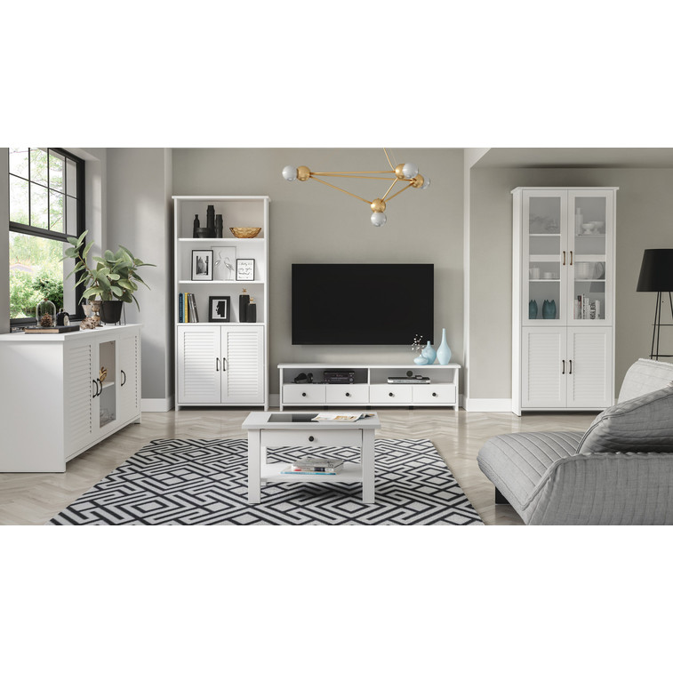 Vitrína ORIENT W2D je vyrobena z lamina v bílé barvě. Lamelová žebrovaná dvířka připomínají rolety, které podtrhují netradiční design, který je inspirovaný exotikou. Díky pevné konstrukci a nadčasové bíle se budete cítit příjemně a útulně. Nábytek z kolekce Orient se hodí do obývacích pokojů a předsíní. Kovové úchytky doplňují celkový vzhled kolekce. Vitrína je policová, s částečně uzavřenými plnými dvířky.