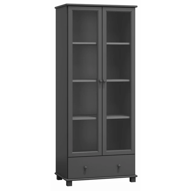 Vitrína RW103 je vyrobena z mimořádně odolného přírodního borovicového dřeva, které zaručuje odolnost a stabilitu konstrukce nábytku. Skleněná úprava dvířek umožňuje vystavit dekorativní prvky, zdůrazňující originální design. Přírodní materiál dokonale kombinuje eleganci s funkčností a vytváří tak jedinečný interiér.