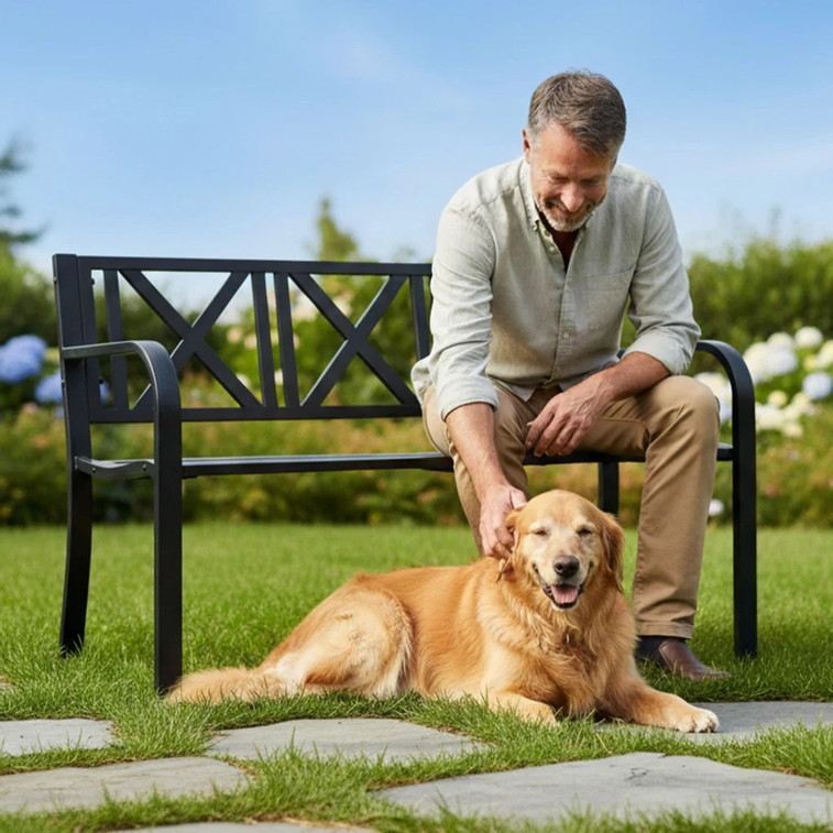 Zahradní lavička CROSS, černá.