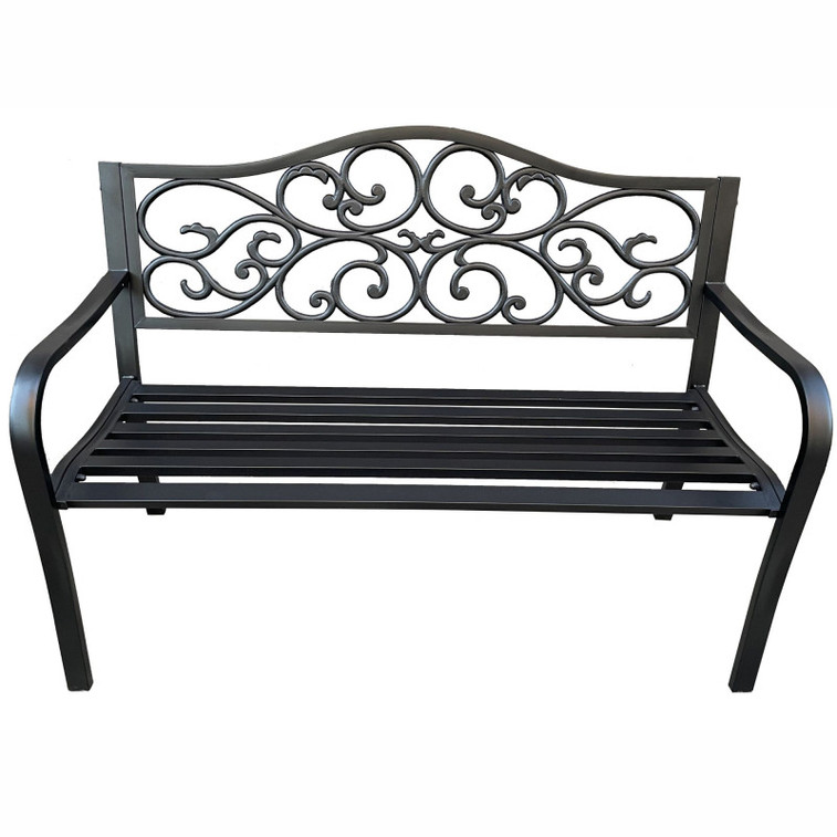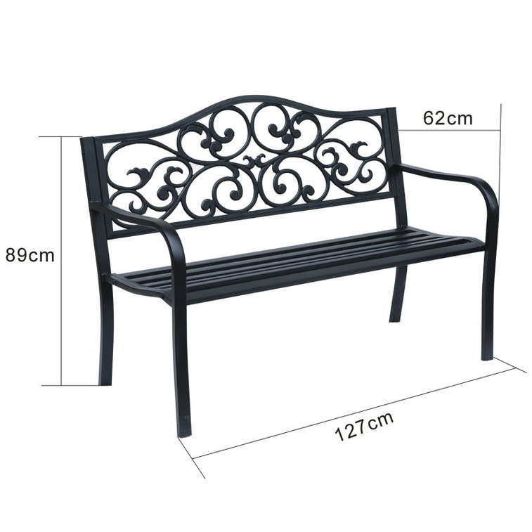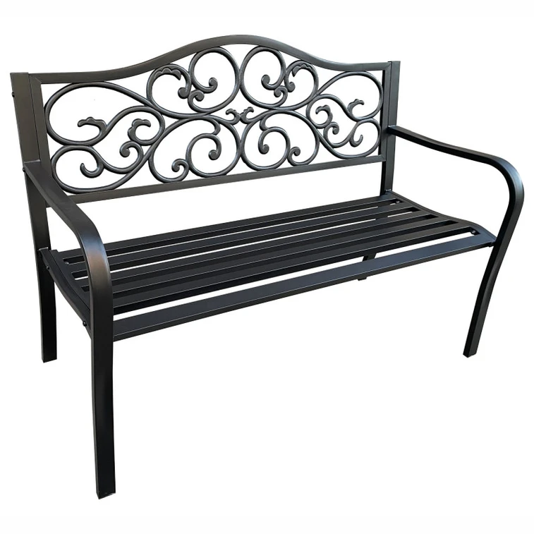 Zahradní lavička Irga s ocelovými nohami a litinovým opěradlem. Kovová zahradní lavička je krásným a zároveň praktickým prvkem každé zahrady. Může být umístěna na verandě, pod pergolou nebo v zahradním altánku. Bude skvělou dekorací a pohodlným místem k odpočinku v letních dnech.