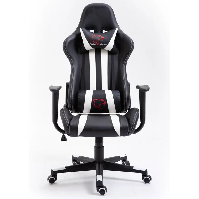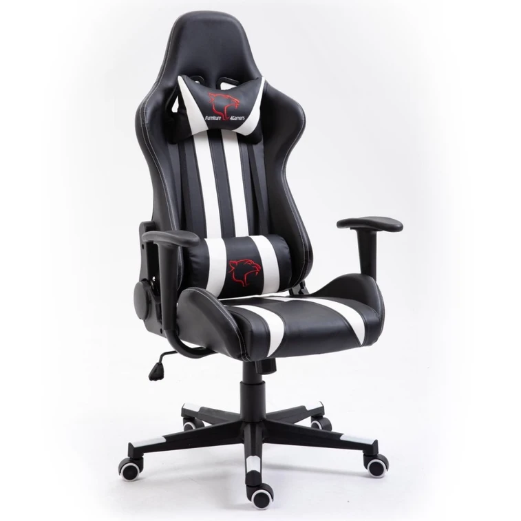 Židle F4G FG33. Otočná židle F4G je kus nábytku určený pro hráče počítačových her, kteří tráví mnoho hodin u počítače. Ergonomická herní židle má profilované opěradlo a sedák, aby v ní sedící člověk neměl zatíženou páteř a cítil se v plném pohodlí. Židle má nastavitelné područky a otočný mechanismus, který umožňuje nastavení výšky sedáku. Díky funkčním gumovým kolečkům, můžete nábytek přemisťovat tiše bez poškrábání podlahy. Křeslo je navíc vybaveno mechanismem naklápění opěradla v rozsahu 90, až 180 stupňů, který zajišťuje možnost relaxace ve velmi pohodlné poloze. K hernímu křeslu jsou přidány designové a praktické polštáře, které lze použít jako další oporu pro krk a záda.